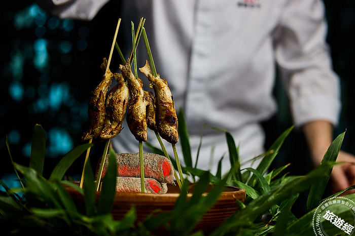 「鹽烤香魚」選用宜蘭香魚,以精準的火候將之碳烤至外酥內嫩。