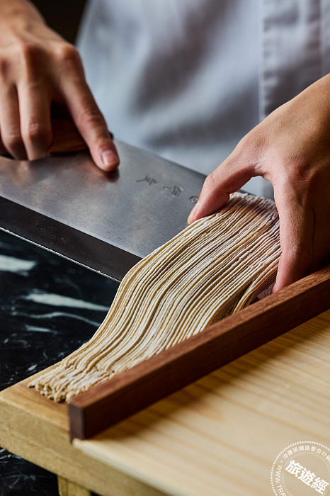 宜蘭香魚有「初夏使者」之稱,將香魚以「鹽烤香魚」呈現,以精準的火候將之碳烤至外酥內嫩,保留魚肉本身的果香與恰如其分的油脂比例;蕎麥麵在日本已是悠久飲食文化,至今仍有「帶來好運」的象徵,初夏懷石菜單料理長為賓客獻上「手打蕎麥麵」,以富含營養的蕎麥製成的手工冷麵,消暑之餘也寄寓一份來自料理長對賓客的祝福。
