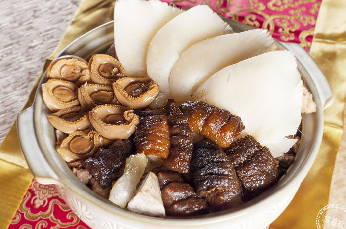 另外,新春必備年菜「佛跳牆」,將以「王朝砂鍋佛跳牆」為品質,謹限量20鍋,主廚親自調製以南非鮑魚、中鰭翅與美國參等頂級食材,以慢工細活依序堆疊方式,以文火慢煨,做出這道醇厚卻不膩口的湯品。