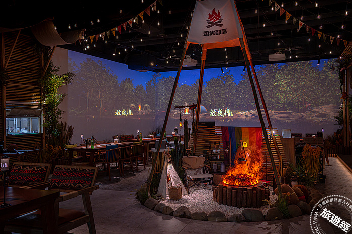 螢火部落此次特別與露營用品代理商「ABC Camping Country」攜手,將戶外野趣搬進都會!店內營造彷彿置身山林的沉浸式空間,走進店內,即被綠意盎然的森林氛圍包圍,三角旗幟迎風飄揚,營燈閃爍,搭配精心挑選的自然系音樂與獨特香氛,營造出最愜意的露營體驗。更令人驚豔的是,透過全室投影融接技術,店內座位區彷彿化身一座日夜變換的森林,搭配季節更迭的動態影像,讓您身歷其境,感受最真實的露營樂趣。