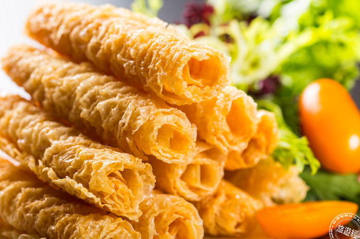 除了湯底之外,東來居還帶來多款店內的招牌涮料,主廚強力推薦的就是三秒腐皮,許主廚表示,這是全香港首創、獨一無二的火鍋涮料,最初是餐廳股東們於店內聚餐時,因為想替小朋友點選方便食用的涮料,建議主廚做出大小約一隻食指大的炸腐皮捲,因為只需涮上三秒即可享用,就取名為三秒腐皮,吸收湯底美味菁華的腐皮、品嚐起來外軟內脆,廣受食客喜愛,在東來居一天可以賣上數百捲。