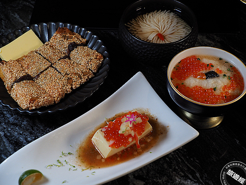 情侶約會最愛雙人套餐,除了大啖美味帝王蟹外,還能品嚐招牌「日本A5和牛翼板」,大理石油花分布均勻,玫瑰色肉質鮮嫩欲滴,放入高湯輕涮幾下,滑嫩多汁的和牛瞬間釋放香氣,令人回味無窮。另外,也為無飯不歡的人設計的「北海道海膽明太子茶泡飯」,加入昆布高湯沖泡,融合明太子鹹香與海膽鮮味,美味層次加倍。另還有「萬丹紅豆鍋餅」、「菊花豆腐」與創意甜點,飲品可任選「熱鐵觀音」或「熱抹茶」,回甘茶香與甜點、甜品,也為這個餐期來場最後回味。