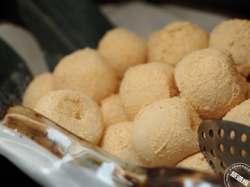 韓國中秋必吃松片及麻糬,圖為韓式黃豆粉年糕(攝影:洪書瑱)