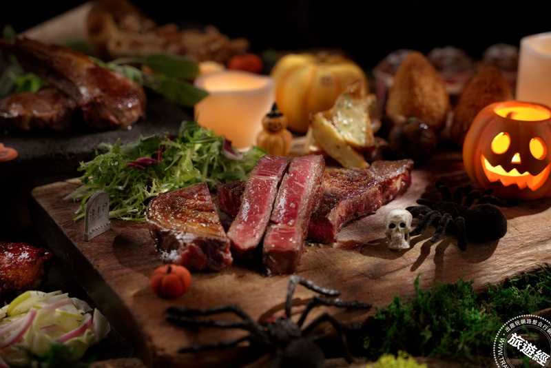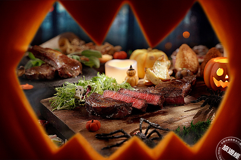 而「Ciao西西里牛排餐酒館」於10月27日起至11月2日推出晚間限定的「女巫市集饗宴」,餐廳空間以藍、黃交錯的燈影營造古堡般的神祕氛圍,用餐期間還有機會巧遇女巫現身。萬聖節饗宴以義大利市集概念結合半自助形式呈現,可單點沙拉吧980元,亦提供三款主餐選擇,餐價1,480元起,須外加一成服務費。從沙拉吧、前菜、主菜到甜點皆融入節慶巧思。前菜區供應香料南瓜湯、義式炸飯糰、炸海鮮與西西里風味小食;甜點區則以十多款萬聖節造型甜品吸引目光,讓視覺與味覺一次滿足。