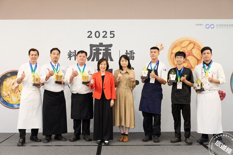 經濟部今年首度以台菜經典風味「麻油」為主題,舉辦「2025麻油料理擂台競賽」,決賽當日傳統組及創新組金銀銅賞大合照。圖:台北凱達大飯店提供