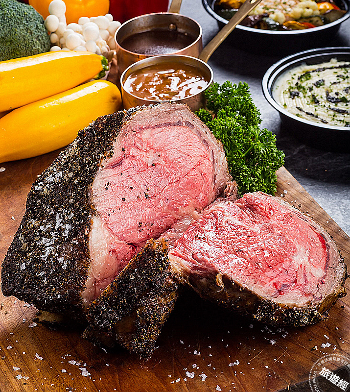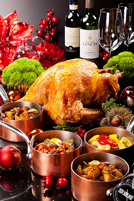 廣受饕客喜愛的「威靈頓牛排」禮籃,精選頂級菲力部位,撒上適量海鹽和胡椒後香煎至表面上色,接著均勻抹上經過熱鍋拌炒的蘑菇泥,外層再包裹一層由無鹽奶油、麵粉和糖調製的酥皮,最後刷上蛋液高溫烘烤至表皮金黃酥脆,禮籃附有手工芥末籽醬與波特酒醬,搭配蘑菇栗子等豐美配菜,每組7,880元。此外,年年熱賣的傳統「爐烤火雞」以及「爐烤美國頂級肋眼牛排」禮籃,同樣附贈經典醬汁與三款配菜,每組5,680元起。