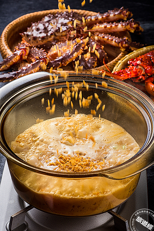 而位於酒店二十一樓的「蘭亭」,則以滬菜為主調,加入川式辛香與台式溫潤,打造出秋日最具層次的蟹宴風情。「麻油處女蟳麵線」是以黑麻油、老薑與米酒煨煮鮮美的處女蟳,湯頭香潤飽滿、蟹肉鮮嫩細甜,象徵秋日的家常暖意。「宮保滑蛋處女蟳」將川式宮保醬的辣香與滑蛋的柔嫩完美結合,讓鮮蟹在細膩中展現熱烈個性。「醬爆沙公年糕」則是以黑豆瓣醬為底,融合蟹香與年糕的糯韌口感,鹹甜層疊、香氣濃郁。「勁蒜炒沙公」是將沙公與炸蒜加入老母雞湯中煨煮,讓蒜香、蟹香與高湯香氣交織成舌尖最動人的秋味印象。