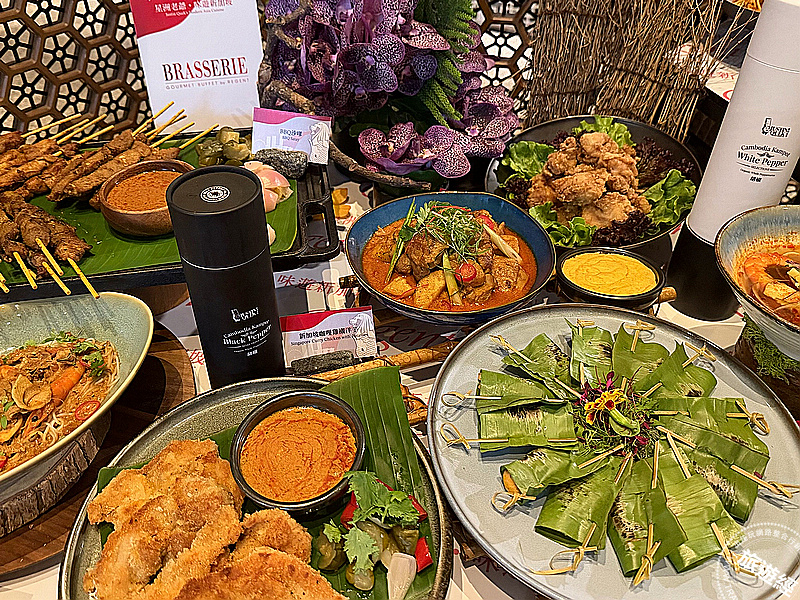 栢麗廳自助餐則以「沉浸式星洲市集」為主題,除了滿佈餐檯的料理之外,更以空間佈置重現熱帶南洋的節慶氛圍,食客可以品嘗到星洲咖哩雞襯洋芋、香蕉葉炙烤鮮魚烏達、香烤豬肉沙嗲,並於現場設立新加坡叻沙麵與鮮蝦拉麵現烹專區,因空間及食物香氣與熱氣氤氳,讓人彷彿置身新加坡街頭。