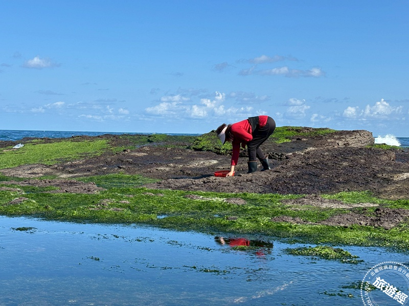 海女依循潮汐節奏,於礁岩密布的潮間帶尋找紫菜