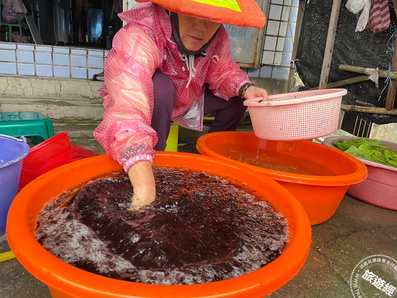 每逢採收季,貢寮沿岸的「海男」、「海女」便依循潮汐節奏,於退潮時分進入礁岩密布的潮間帶進行採集。在地漁民陳振益分享,紫菜多附著於礁石表面,越是浪花拍打猛烈之處,生長情況越佳,但同時也提高了採收風險。因此,下海前需詳加觀察海象,並穿著防滑裝備確保安全。採集時,漁民會以自製刮具或徒手小心摘取,避免破壞紫菜結構。採收後,還需細心清除泥沙與雜質,確保料理時的潔淨與口感。處理完成的紫菜可冷凍保存,亦可日曬乾燥後真空包裝,延長保存期限,讓海味全年都能被珍藏。