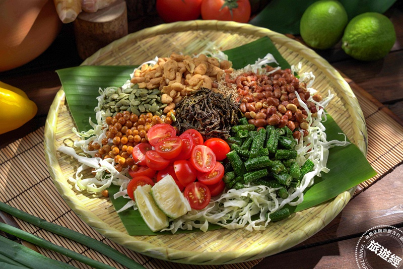 緬甸國民小吃「茶葉拌豆沙拉」以發酵茶葉拌入多種豆類、蔬菜與堅果,展現南洋料理少見的風味組合。_君品Collection提供