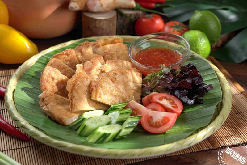 人氣小吃「月亮蝦餅」蝦香濃郁、口感扎實,搭配酸甜醬汁更顯清爽開胃。君品Collection提供