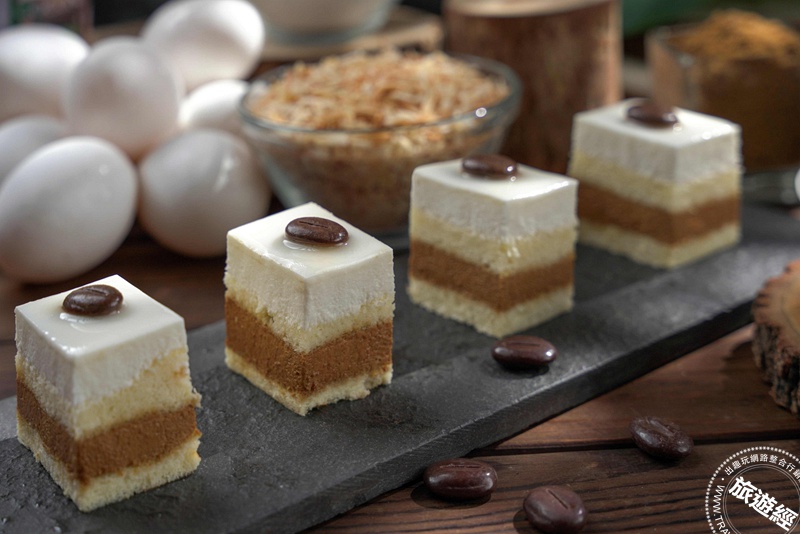 「咖啡椰子蛋糕」微苦咖啡香揉合椰奶的溫潤甜香,口感輕盈滑順、甜而不膩。_君品Collection提供