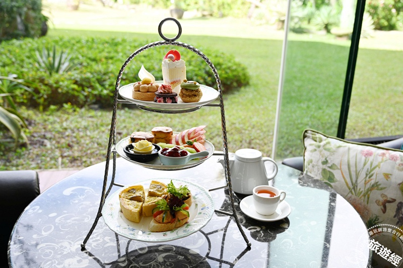 大廳酒吧三層英式下午茶每套1,180元+10_起,集結4款鹹點與4款甜點,旅人可在挑高明亮的空間中,享受悠閒午後時光。圖/墾丁凱撒提供