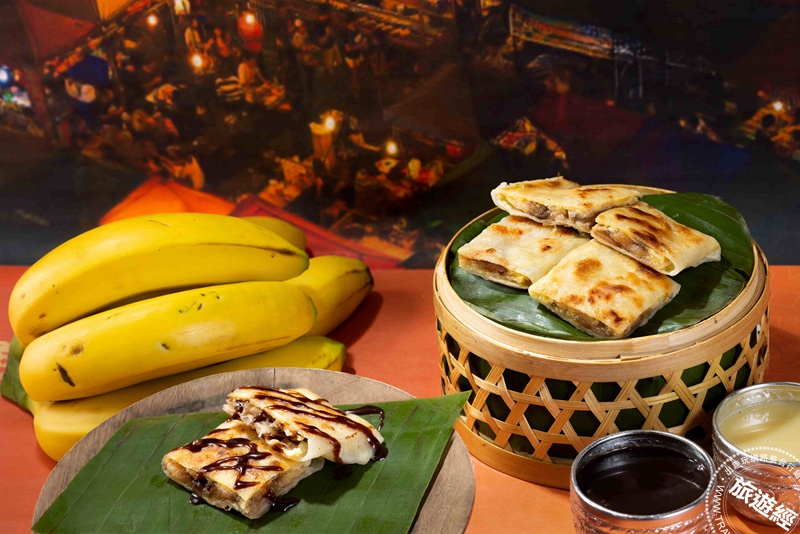 五、「香蕉煎餅」:以手桿餅皮包入新鮮現切香蕉,煎至外層金黃酥香後,再淋上滿滿的煉乳與巧克力醬,入口外酥內軟、香甜涮嘴令人愛不釋口