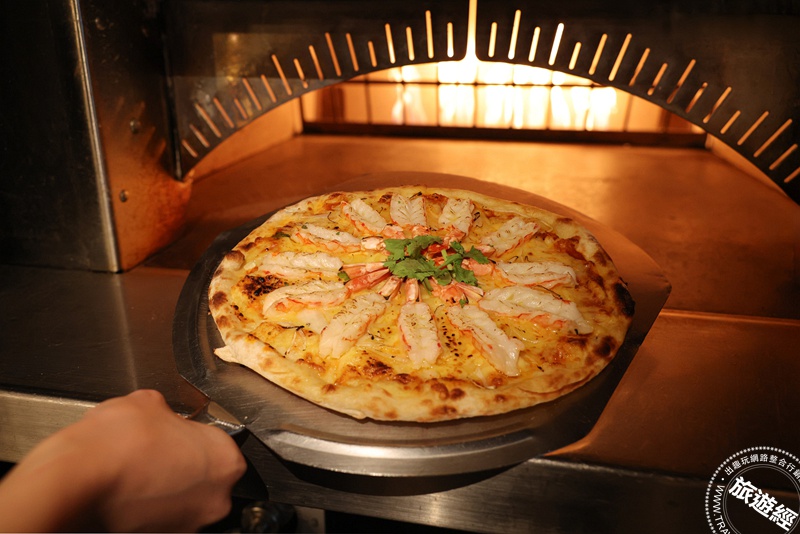四、窯烤披薩:於每整點出爐,由主廚發揮巧思,將泰式酸辣風味融入其中,打造酸香鮮明的「酸辣蝦披薩」,以酸辣醬鋪底,搭配鮮蝦、香茅與辣椒等辛香料,再撒上濃郁起司進行高溫窯烤,酸、辣、鮮、香層層交織,帶來充滿南洋風情的創意美味。