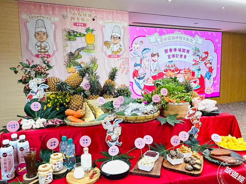 春季場由歸仁兩大辦桌世家蘇嘉進與施宗泰總舖師聯手掌廚,兩位總舖師累積近百年宴席經驗,將以深厚技藝呈現最經典的臺南辦桌風味。師傅們嚴選臺南各區特色食材入菜,包括:關廟鳳梨、綠竹筍、白河蓮子、玉井香菇等在地農產,以及官田跑山雞、學甲蒜頭、將軍烏魚子等特色食材;海味部分則集結北門虱目魚、草蝦、七股龍虎斑魚、干貝與蛤蜊等新鮮漁獲,搭配後壁糯米、鹽水紅豆與柳營鮮奶等優質物產。此外,宴席將使用的鹽麴及提供每桌海洋鹼性離子水,以及茶之魔手加碼贊助每桌沁涼飲品仙楂烏龍,為活動增添風味。