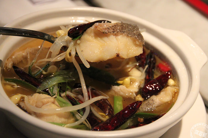 而不同的川味展現還有「回鍋肉」,特地將肉煸的更乾,加入正宗川味味道的「郫縣豆瓣醬」、薑、蒜苗、青紅兩種辣椒拌炒而成。另外還有一款顛覆傳統印象的「水煮魚」,也不展現印象中「紅」顏,主廚表示,這才是正宗「水煮」料理!