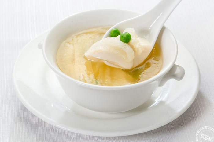 一直是國賓隱藏版料理「雞豆花」,主廚以雞胸肉打碎加入已經過熬煮6-8小時老母雞湯呈現這款相當耗時的「雞豆花」,在這次「國賓天母川菜廳」開館後,正式端出檯面。