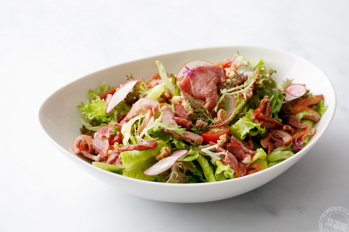 沙拉「新鮮無花果及鴨賞沙拉佐梅子油醋醬」靈感來自宜蘭特產鴨賞