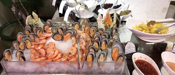 旅客入住地段絕佳的凱城酒店時,規劃1晚享飯店自助餐,在舒適涼爽的用餐環境中,品嚐豐盛的異國料理,涵蓋沙拉、冷食、熱食、飲料、水果、甜點,尤其新鮮海產更是可以大快朵頤、吃個過癮。