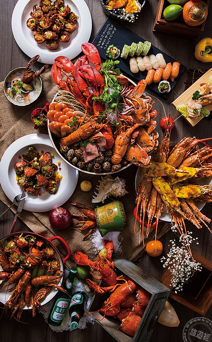 熱食區也推出多道龍蝦人氣料理,酒釀干燒龍蝦尾及馬賽風味碳烤波士頓龍蝦。嚴選波士頓龍蝦尾,肉質彈牙香甜,飽滿龍蝦肉佐以糯米酒釀提味,以酸、甜、辣三味為醬汁基底,大火乾燒出令人懷念的家常滋味。百宴自助餐廳超值海鮮饗宴,平日晚餐每位原價920元+10%,目前正加值加量不加價。