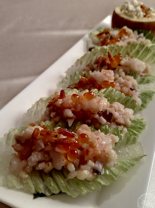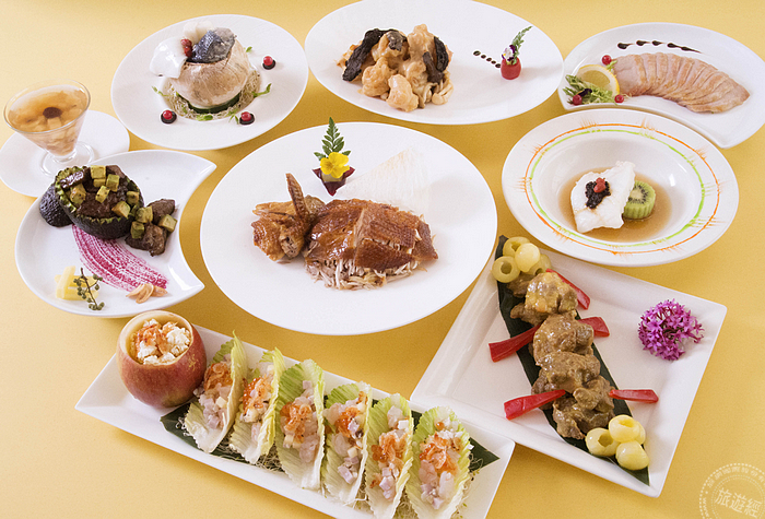 《酪梨山椒汁骰子牛》是一道內外兼美的料理,主廚以美式料理常見的食材來呈現,取酪梨的綿密搭上牛肉的嚼勁,並用山椒特有的香氣及微辣感帶出牛肉的美味;另外,將大家常見的「蝦鬆」料理,利用蘋果的脆甜微酸帶出《港式蘋果山藥炒蝦鬆》;還將橄欖蜜餞的甜、豆豉的鹹、奇異果肉的酸,一起融合端出《欖豉奇異蒸圓鱈》。
