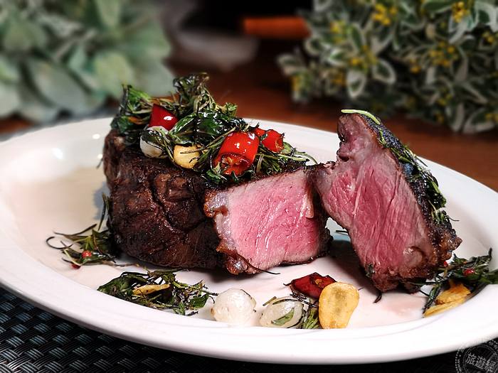 綻1852牛排館於上個(7)月甫開幕,以牛排、龍蝦為主題,若有朋友可以一起分享,則建議點用「厚切」牛排,這又是主廚的中西料理融合之作,除了現點現切後,將牛排先嫩煎並放在約莫60度的保溫室50分左右,讓牛排自然熟成,等要上桌前,再用300度高溫煎熱後,再放上另行用百里香、迷迭香、九層塔、蒜、薑、辣椒、珍珠洋蔥等7種香料伴炒的「三杯」覆蓋在牛排上,讓民眾品嚐感受不同於市場的牛排樣貌與味覺體驗!