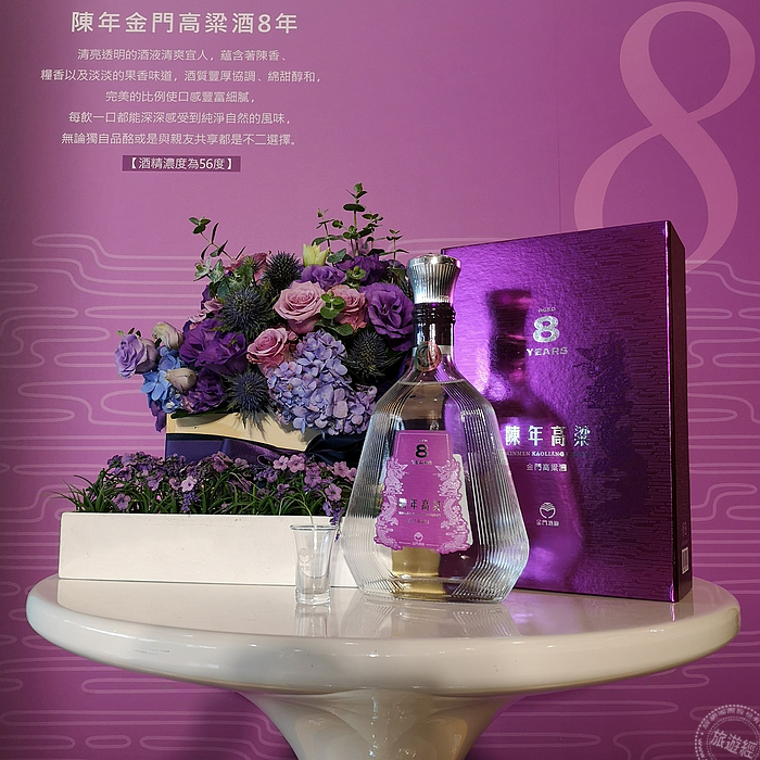 金酒公司總經理張鳴仁表示,金門酒廠繼5年經典陳高縱橫酒壇數十載後,於去(2017)年推出酒精濃度56度8年及12年陳年高粱酒,梯形的瓶身標籤象徵登峰造極,白金線條勾勒雙龍各據一方,寓意左右逢源。「平步青雲雙龍富貴」為12年陳高設計主軸,整體包裝採用寧靜典雅的青色調;8年陳高則為尊貴奢華的紫色調,展現「紫氣東來祥龍盤飛」的富貴氣派。兩款酒皆運用「純糧固態發酵釀酒工藝」的釀造古法製作,蒸餾所得之酒液再經過「擷頭去尾」後,窖藏於恆溫恆濕坑道中,再歷經至少8年與12年以上熟成。酒中元素在坑道天然的冷空氣長年調和下,風味自然醇化,醞釀出細膩幽雅的陳年芳香。12年陳高,富含濃郁陳年芬芳與糧香氣味,口感圓潤醇厚;8年陳高,則蘊含淡雅果香味。未來也將推出15年及22年陳年高粱酒!