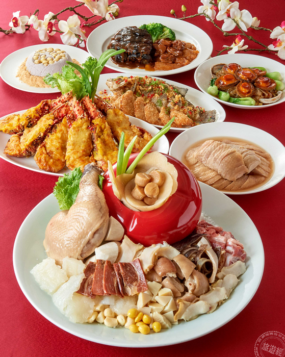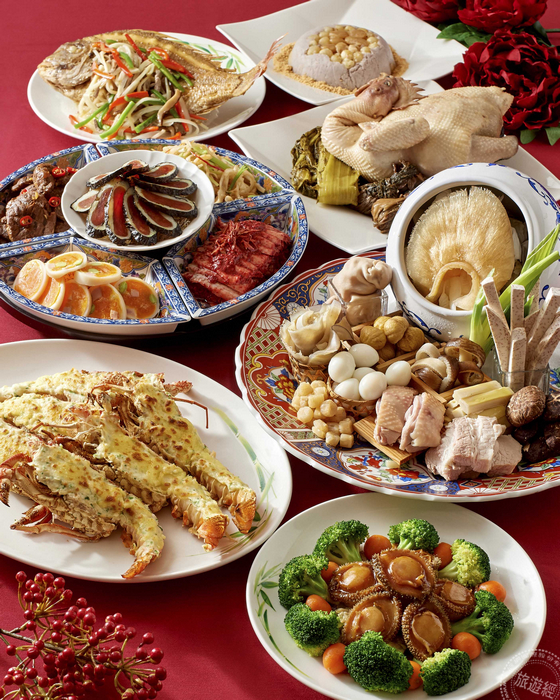 而今年蓬萊邨王永宗主廚也將為台式料理中作為復刻經典開胃菜端上桌,由紅糟鵝肉、芹菜龍膜、旦黃中卷、麻辣中腱、孔雀烏魚子,五種菜色融合而成的拿手料理「五福拼盤」。另外,受到相當好評且限量的「懷舊菜尾一品鍋」,主廚選用頂級食材,如日本干貝、鮑魚、魚翅、加入綑肚、魷魚、馬蹄、菜丸、排骨酥、羊肚菌菇和蘿蔔等,食材各自處理好後用文火煨熟,並取其精華對湯放置蒸籠,限量30盅,每盅5800元,一上市即預售完畢,目前持續預購追加。