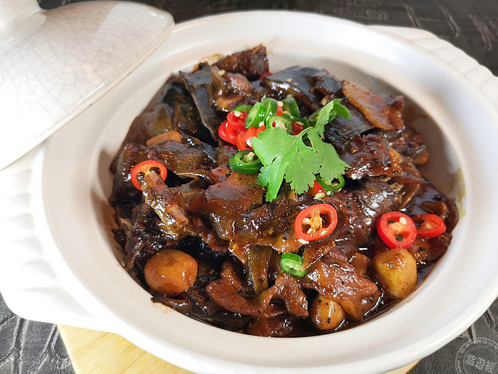 此次來台主廚特別推薦的滿洲宮廷菜色!其中這道「宮廷秘製牛肉」,源自於主廚自身的滿洲背景而設計的美饌。精選美國進口牛肋骨,施以「三進三出」的特殊技法稱作,先以自製老滷水將牛肉滷上味,接著切片油炸,再以辛香料八角、桂皮等煸炒。口感外焦脆到酥,內細膩至嫩,深受武漢人喜愛,相信也能擄獲台灣食客的味蕾!