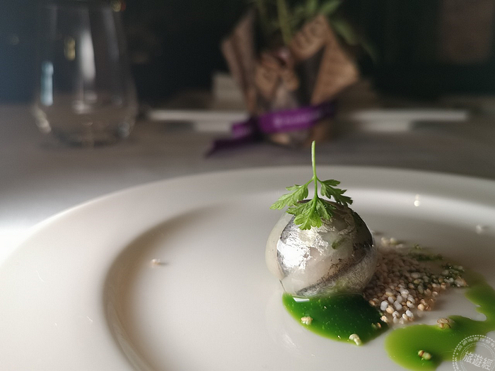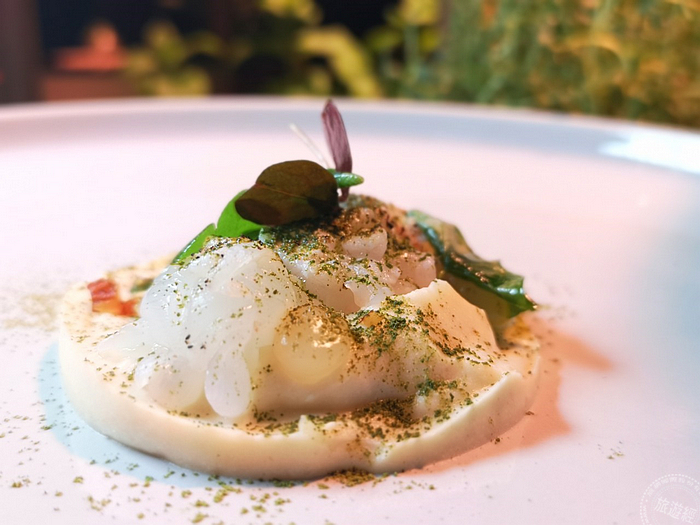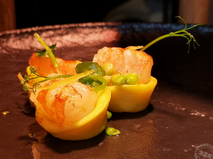海鰲蝦,柚子,抹茶與杏仁(攝影:洪書瑱)
