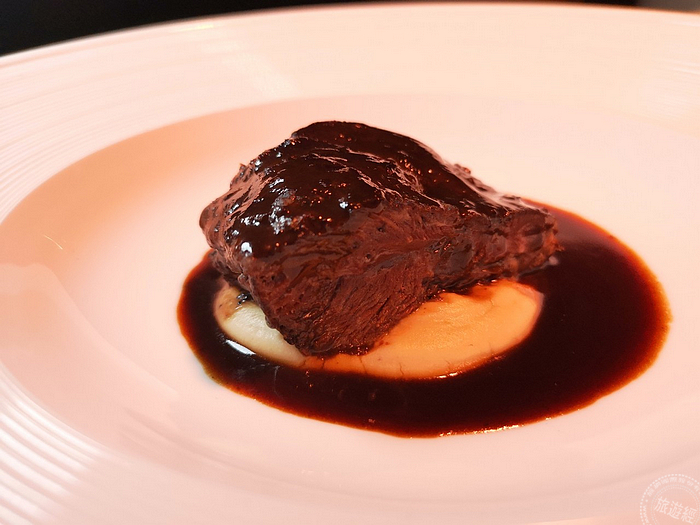 北義燉牛頰精煉肉汁與芹菜頭泥(攝影:洪書瑱)