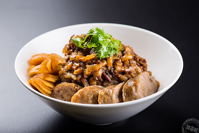 「東坡肉燥飯」則由俱樂部餐廳主廚黃來發創作,發想來自滬式東坡肉的做法,肉品的部分精選肥瘦各半的豬腹脇肉部位,滷汁中則加入豬皮增加膠質,佐以紅蔥酥、老抽調味,更加入冰糖平衡醬汁的甘甜度,熬煮過程中還要陸續加入蠔油、紹興酒、胡椒粉、蔥油等提升味道的層次,佐餐的配菜則是以白醋、糖、柳丁皮醃漬的紅白蘿蔔,入口解膩更添回味。
