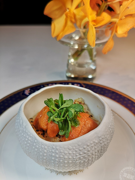 同時還能品嚐到經典不敗招牌料理──「北海道馬糞海膽.甘藍菜燉飯」以日本海膽握壽司為發想,將義大利燉飯東西交匯重新詮釋,選用被譽為「世界米王」、日本最高等級米種的魚沼越光米,鮮美魚高湯煨煮至顆顆飽滿剔透,滑濃熟成帕瑪森起司輕柔包覆於中,搭配綿密味帶甘甜的馬糞海膽,鮮鹹海味如浪潮般襲捲舌尖,金黃微焦的炙燒起司與甘藍菜絲宛如畫龍點睛般驚艷味蕾。
