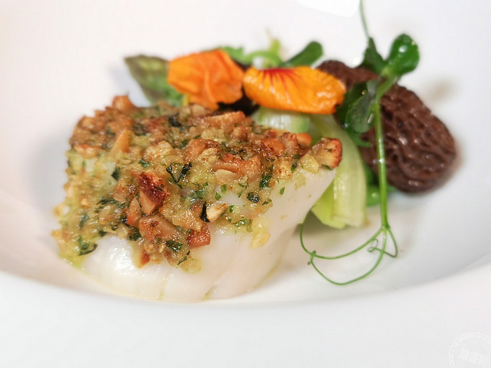 榛果奶油烤干貝.羊肚菌與綠蘆筍(攝影:洪書瑱)