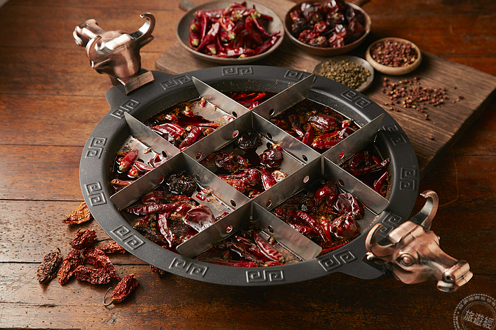 「九宮格吃法」為重慶麻辣鍋獨有特徵,承襲了正宗重慶飲食文化,九宮格鍋中分成9格,格子中的溫度不盡相同,分為「燙」、「煮」、「酣」三種功能,中心格溫度最高,用來燙毛肚、肉片等食材;十字格溫度次高,適合煮蔬菜、豆腐等;四角格則是文火,適合燉骨髓、豬腦等慢煮10分鐘以上的食材。食材被分散烹煮,食用時更容易撈取。