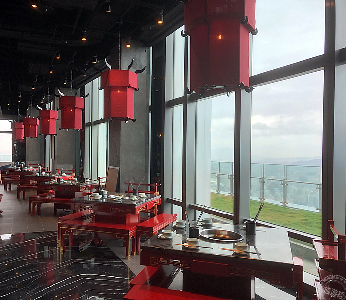 《麻辣45》裝潢風格呈現懷舊感的現代主義風格,除使用重慶當地的家具,更鑲嵌中國傳統圖樣,像是格柵、五金、燈具等,加上坐擁樓高45 層的絕美景觀,展現獨特的「嗆辣」風格。為搶攻信義商圈聚餐商機,平均客單價1,200~1,500元,採單點+每人鍋底費(中午250元、下午150元、晚上350元)。