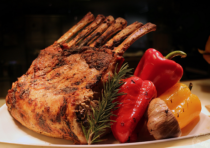 主廚嚴選肉質鮮嫩的帶骨豬里肌搭配美式芥末醬再烘烤(圖:香格里拉台南遠東提供)