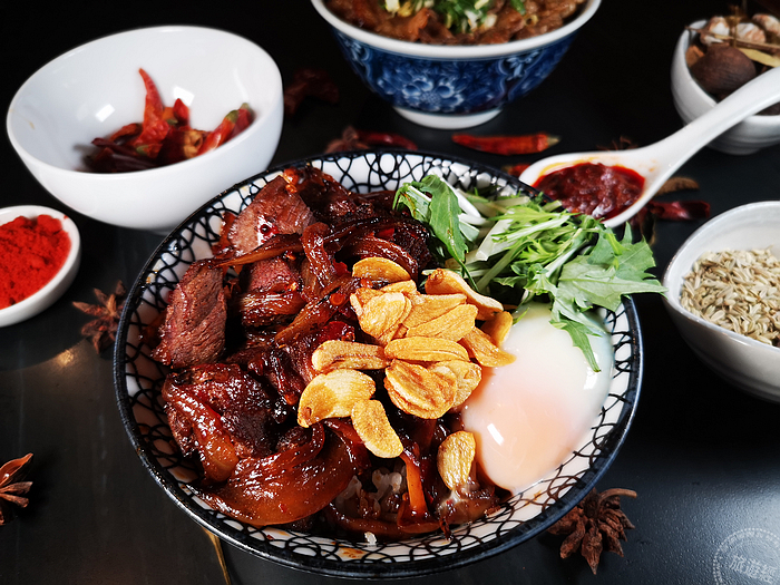 嗜辣或重口味的饕客,則可點選【辛骰子菲力丼】,業者以手工切割的板腱牛排加入鼎旺香辣醬與傳家的麻辣湯底煎炒,每塊牛肉吸附了湯汁,每口麻辣香醇直衝味蕾,可說是最肉麻的聯名商品,辛骰子菲力丼$360!
