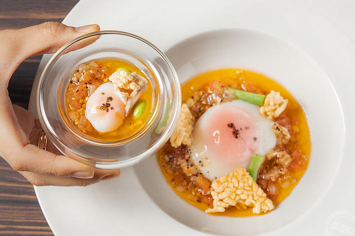 半熟放牧蛋源自2015年來訪、韓國籍米其林二星主廚林正植的客座菜餚(圖:台北晶華提供)