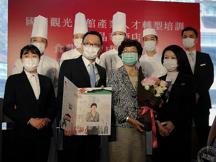 台北晶華酒店今(2020)年適逢30年週年,無奈碰到全球被新冠肺炎的影響,台北晶華選擇,以這個時間點,略略蹲下做為跳遠的準備!台北晶華以向來餐飲見長的長處,來傳承並分享開幕至今、各大主廚們的好手藝,進行了觀光局人才轉型培育計畫,在台灣旅遊交流協會主辦的「食藝學院專班」課程中,進行了一系列名為「晶華食藝銀行」的烹飪訓練課程,課程是15天,包含師傅及現場服務同仁80位學員參加,於昨(16)日專班結業,並展現了兩周來的集訓成果,台灣旅遊交流協會理事長賴瑟珍也到場給予鼓勵與支持,期許學員們持續精益求精。