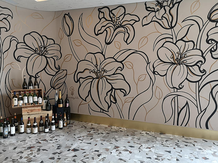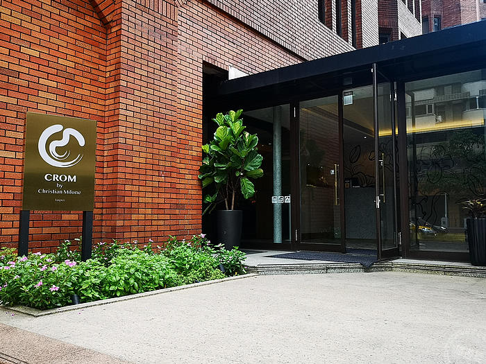 CROM Taipei餐廳名稱「CROM」的由來是結合主廚姓名,靈感亦源自chroma(彩度),意指洋溢在生命中的繽紛色彩,特別是佳餚珍饈的美好世界。可單點或是點用套餐,亦提供創意雞尾酒、葡萄酒單。而且空間以義大利鄉村風景為發想,以金色和紫色為主色調,入口區磨石地磚、櫃台及柱子的仿石漆,搭配牆壁百合花線條的主題壁畫,花園意象引進室內,也能成為一道網美牆,憑添了許多義式摩登風情,讓消費者在急促步調中,在都會台北覓得一處休憩空間,尤其在不能出國的現在,也算來一道「偽出國」之旅!
