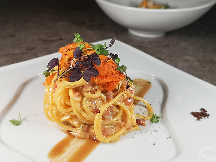 海膽手工細麵搭榛果(攝影:洪書瑱)