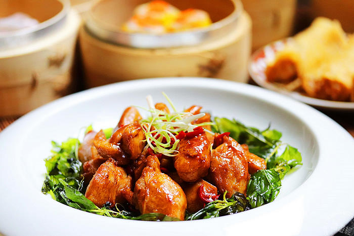 七大類共40道現點現作珍饈美饌包括:掛爐燒鴨、紹興醉雞卷、川味口水雞、霍香牛腱肉、佛山汾蹄、風味燻小卷、烏梅番茄、黃金泡菜的「江南小吃」外;薑蔥牛肉煲、咖哩松阪煲、鹹魚雞粒豆腐煲的「風味砂鍋類」;松露鮮蝦餃、魚子蒸燒賣、鮮蝦腐皮捲、三絲炸春捲、臘味蘿蔔糕、豉汁蒸肉排、菇菇流沙包、蜜汁蒸鳳爪、椰汁紅豆糕、蓮蓉芝麻球的「點心類」;櫻花蝦高麗菜、麻油川七、蝦醬空心菜、白灼美生菜「田園時蔬」;蒜茸蒸草蝦、果律脆蝦仁、滑蛋炒蝦仁、韭黃炒鮮魷、豉汁蒸海鱸球、油鹽水浸鱸魚球「珍品海鮮選集」;芥蘭炒牛肉、橙花焗子排、避風塘脆汾蹄、川椒辣雞球、鳳梨咕咾雞球的「家禽肉類」,與「主食類」的叉燒菜絲炒飯、鹹魚雞粒炒飯、乾炒牛河等。