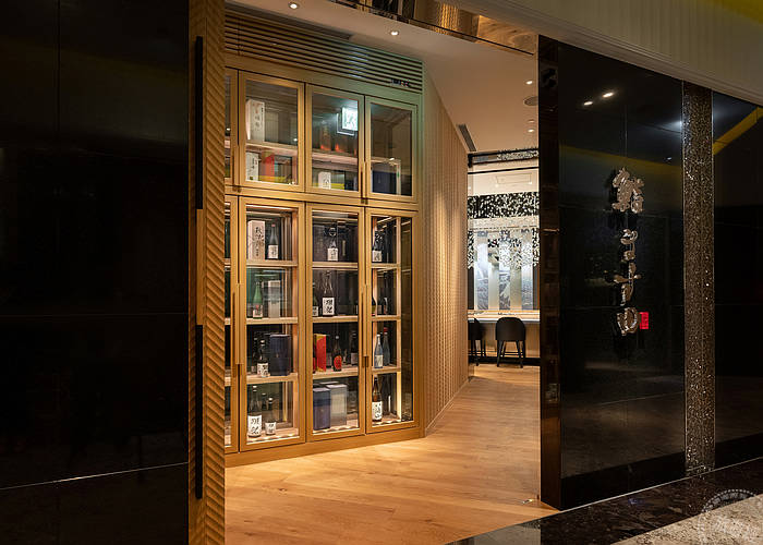 強調「全感官體驗」的「鮨增田 台北」,空間由日本著名橋本夕紀夫團隊設計,使用餐具器皿亦多出自日本名家之手。餐廳板前區僅有12個位置,餐廳內引人注目的水晶燈使用的是埃及水晶,水晶的排列營造出海中的氣泡由下往上湧出的意境。