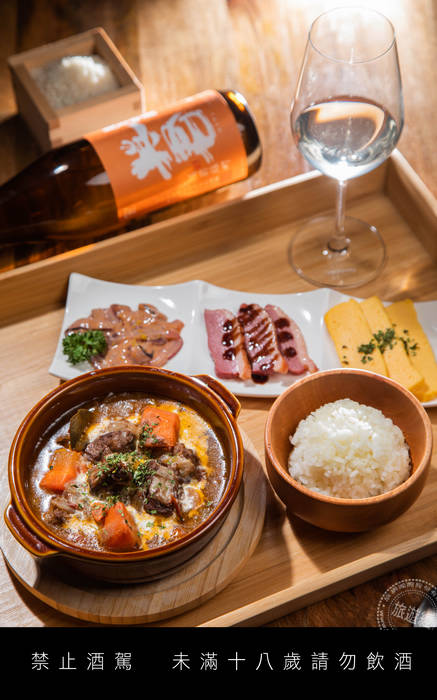 根據獺祭官方網站顯示,與一般日本食用米相比,山田錦的米心範圍大且柔軟,在蒸煮後口感較為清爽不黏,適合用來作為燉飯、炒飯等料理。此次選以山田錦作為主食,搭配不同料理手法,也以日式定食風格附上醬油風味玉子燒、煙燻鴨胸、酒盜鹽辛花枝共三款配菜,讓主食和配菜都能下酒。