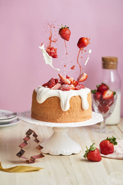 微甜室_草莓奶昔戚風漂浮示意,此款蛋糕限自取,指定捷運站取貨(圖:業者提供)