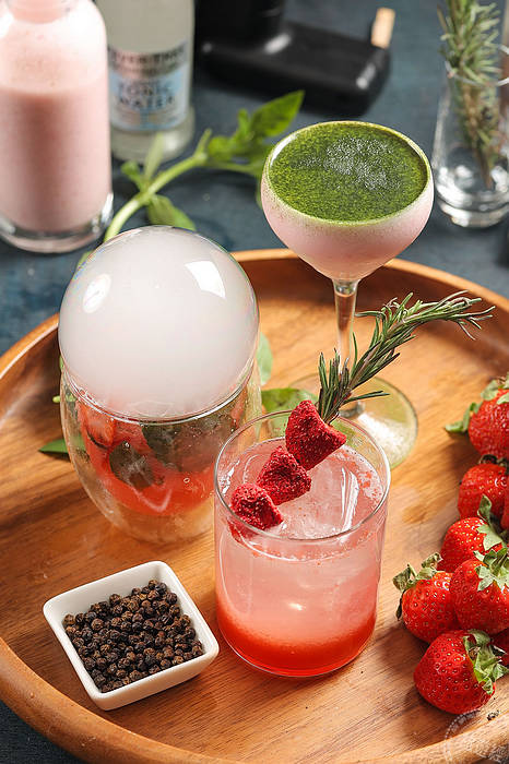 三款以加入羅勒、波菜、以及迷迭香特調的草莓飲品(圖:台北晶華提供)