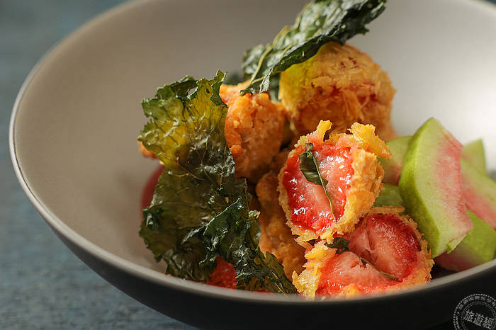 叛逆創意型_搭配上夾入羅勒的香水草莓而成的草莓炸雞天婦羅(圖:台北晶華提供)